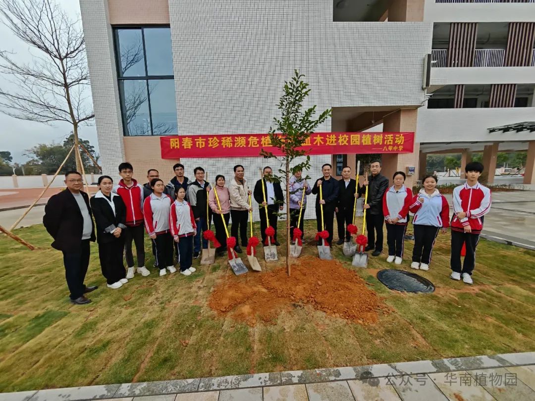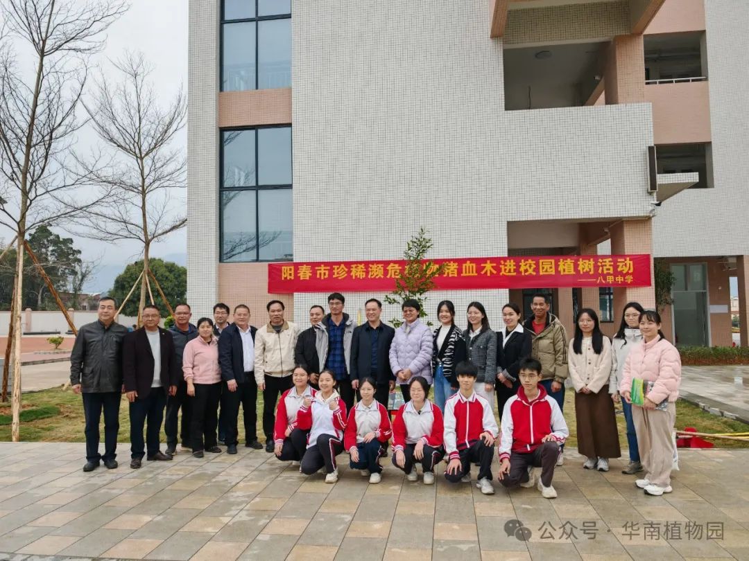 25日,調研團一行來到八甲鎮澄垌村豬血木現場進行實地調研。隨后抵達八甲中學進行座談交流,對“珍稀植物進校園”科普實踐模式進行了專業指導,共同探索豬血木融入課堂,推動學生參與科研項目與生態考察,探索非遺傳承與現代科技結合的創新路徑;并與該校師生一起種下了豬血木樹苗,為美麗的八甲中學校園增添新綠。