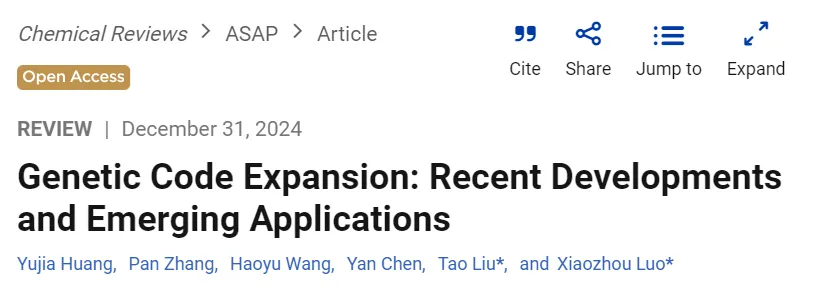 2024年12月31日,中國科學(xué)院深圳先進技術(shù)研究院合成生物學(xué)研究所合成生物化學(xué)研究中心(以下簡稱“深圳先進院合成所生化中心”)羅小舟團隊和北京大學(xué)藥學(xué)院劉濤團隊在國際著名學(xué)術(shù)期刊《化學(xué)評論》(Chemical Reviews,影響因子51.4)聯(lián)合在線發(fā)表了題為“Genetic code expansion: recent developments and emerging applications”?的綜述文章,并被選為期刊封面(圖1)。文章從系統(tǒng)層面詳細概述了基因密碼子擴展技術(shù)(GCE)的現(xiàn)狀以及面臨的挑戰(zhàn)與機遇,并重點論述了其在合成生物學(xué)、生物機制研究和新型治療等前沿領(lǐng)域的應(yīng)用潛力。