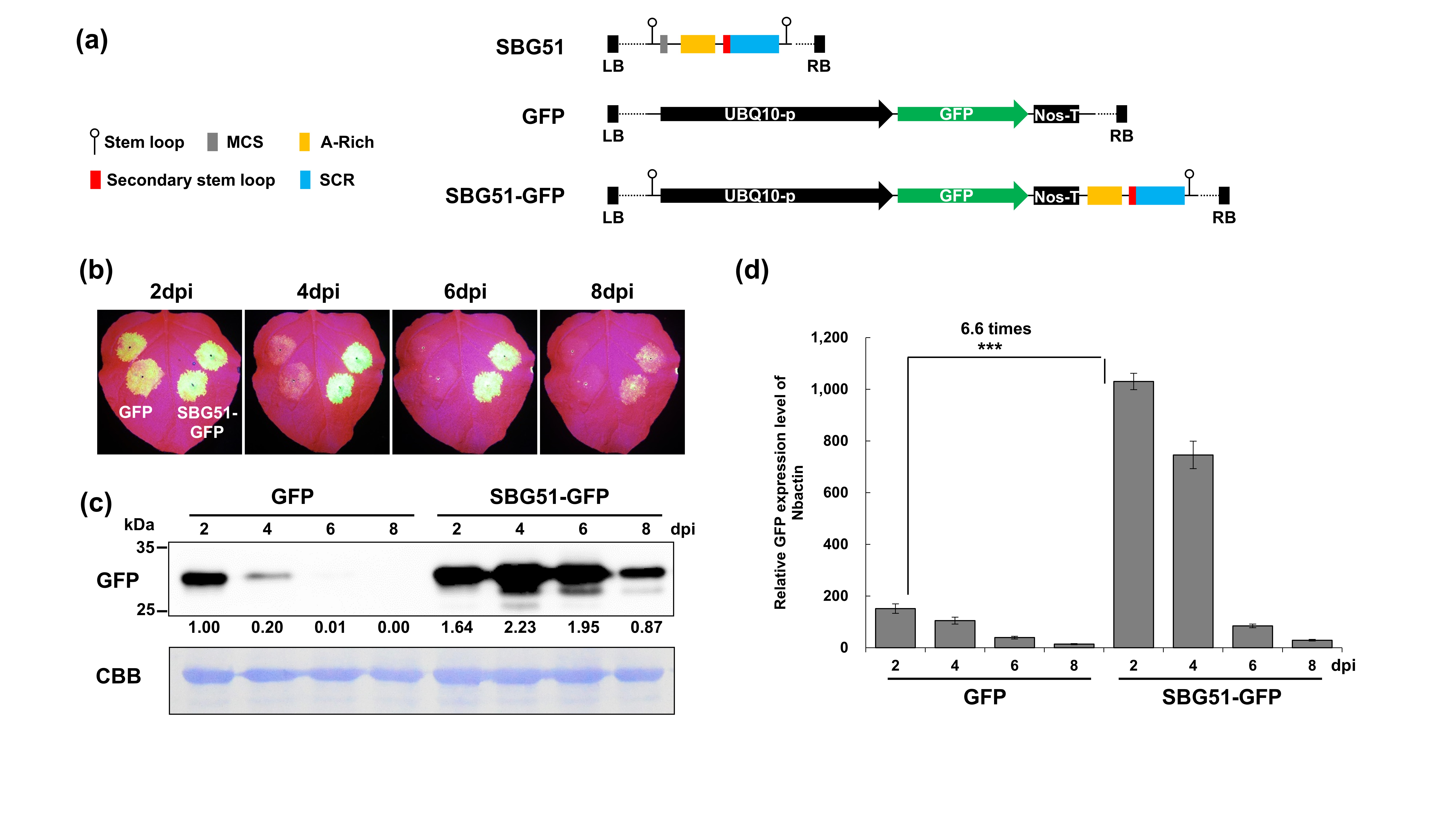 中國科學院華南植物園鄧書林研究團隊在進一步對SBG51衛(wèi)星DNA的研究過程中,發(fā)現(xiàn)了一種新型的基因表達增強序列。當該序列作用于終止子的下游時,可以顯著地提高上游基因的表達水平(圖2)。而且這種基因表達增強作用不依賴啟動子和終止子類型,并能維持啟動子時空表達特異性。進一步研究發(fā)現(xiàn)人工合成串聯(lián)重復(fù)的“ATAAA”和“TTAAA”關(guān)鍵元件,也可增強表達。陳煥鏞副研究員張藝與慕恩(廣州)生物科技有限公司合作,將該序列在非植物系統(tǒng)及合成生物學應(yīng)用中展開了廣泛的研究。研究發(fā)現(xiàn)這種新型的基因表達增強序列及核心元件在植物和酵母細胞中均有效,為合成生物學優(yōu)化表達載體和基因編輯精準控制基因表達提供了有力的新工具。