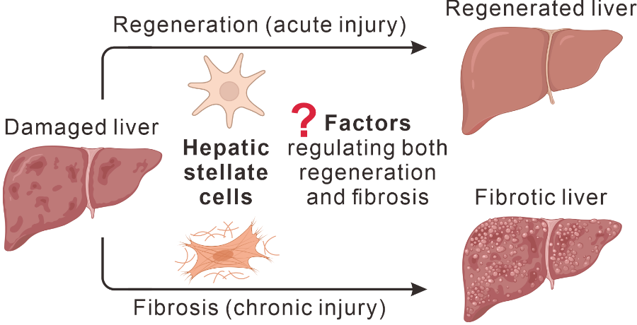 圖1?肝星狀細胞(hepatic stellate cells)在肝損傷后的再生和纖維化中發揮重要作用,但在肝星狀細胞中同時調控兩個過程的靶基因并不清楚。
