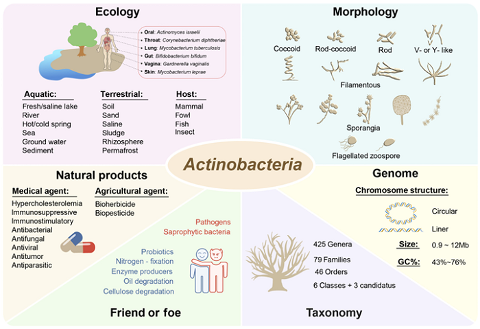 中國科學院南海海洋研究所熱帶海洋生物資源與生態重點實驗室高貝樂研究員團隊總結分析了放線菌鞭毛的退化性演化及其非鞭毛依賴的多樣化運動方式,并探討了這些現象與生態適應和細胞結構演化間的關聯。相關成果以“Flagellar evolution and flagella-independent motility in Actinobacteria”為題,發表于微生物前沿領域研究的權威期刊Trends in Microbiology。中國科學院南海海洋研究所2020級博士生陳園園和助理研究員朱思琦為共同第一作者,研究員高貝樂為通訊作者。放線菌門(Actinobacteria)是細菌域中物種最豐富的細菌門之一,其成員廣泛分布于地球各個角落。雖然傳統觀點認為大多數放線菌是不具備運動能力的,但近年來的研究揭示了一些關于該細菌門運動機制的新發現,其中包括鞭毛的退化性演化及非鞭毛依賴的運動方式。