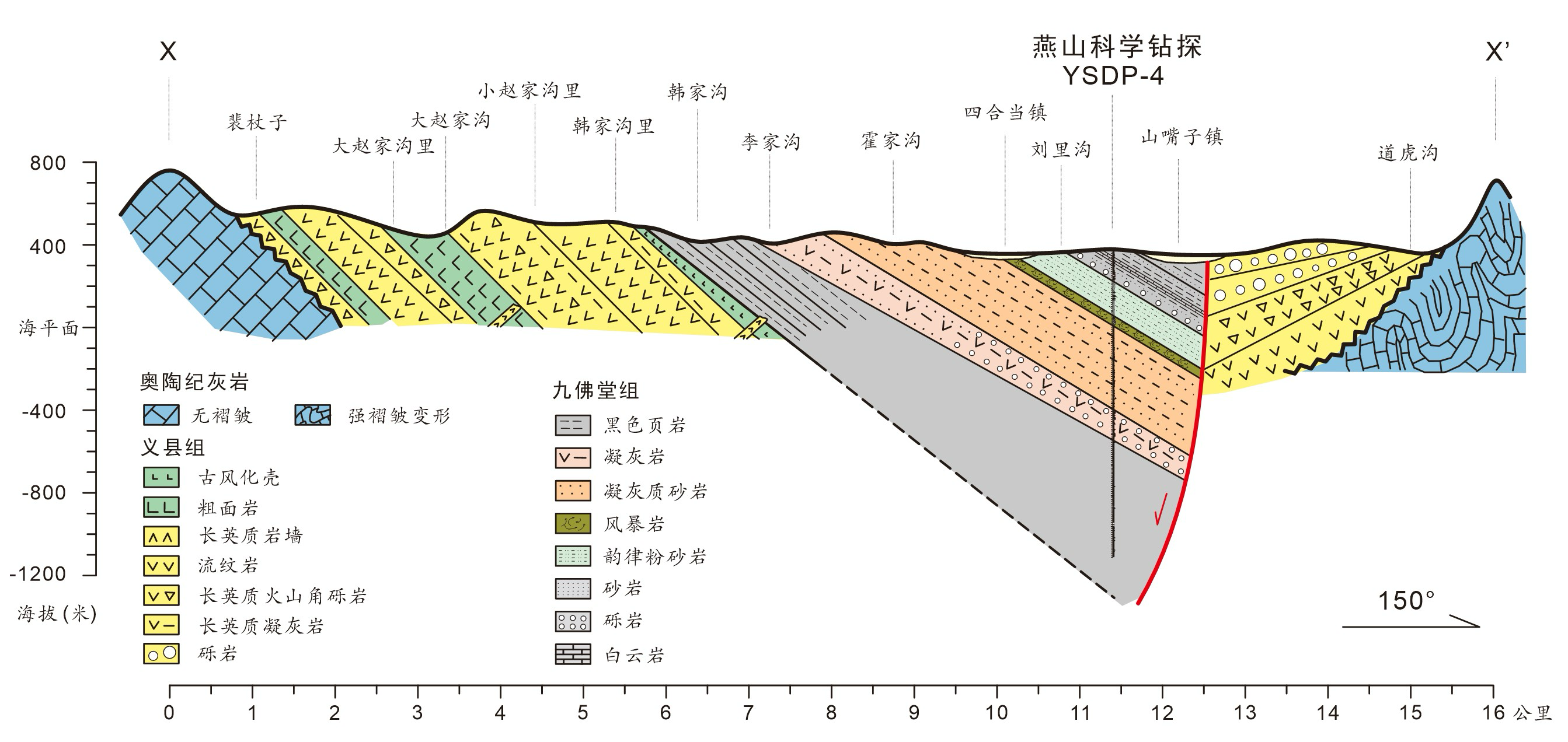 圖1 喀左盆地地質剖面圖與科學鉆探位置