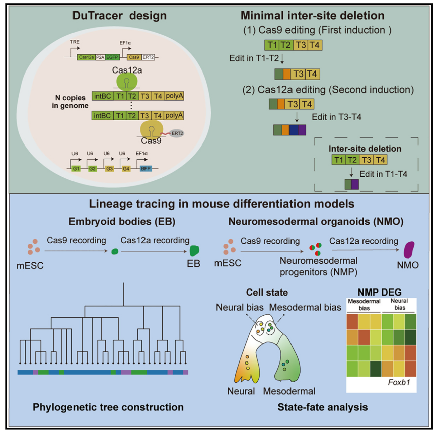 2025年1月28日,中國科學院廣州生物醫藥與健康研究院彭廣敦研究團隊在《細胞·報告》(Cell Reports)發表重要研究成果,成功開發出名為“DuTracer”的新型單細胞譜系示蹤技術。該技術通過巧妙結合兩種基因編輯工具CRISPR-Cas9和Cas12a,顯著提升了細胞譜系追蹤的精度和深度,為解析胚胎發育、器官再生及疾病機制提供了全新工具。