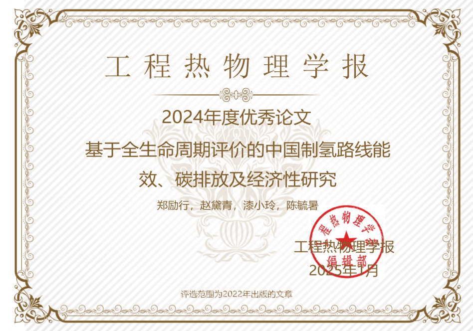 近期,廣州能源所能源戰略與碳資產研究中心博士畢業生鄭勵行(現為研究所聯合培養博士后,合作導師汪鵬研究員)作為第一作者在《工程熱物理學報》上發表的《基于全生命周期評價的中國制氫路線能效、碳排放及經濟性研究》原創性研究成果獲評2024年優秀論文。論文深入探討了中國當下煤氣化制氫、天然氣重整制氫、丙烷脫氫、風電制氫及光伏制氫等重要的制氫路線的技術經濟指標,通過對“原料→制氫→氫氣”過程中大量的技術參數的搜集與對比,建立了中國關鍵制氫路線的全生命周期數據清單,使不同制氫路線能效分析具有可比性,增加了丙烷脫氫的制氫路線評估,豐富了制氫路線全生命周期評估方法。