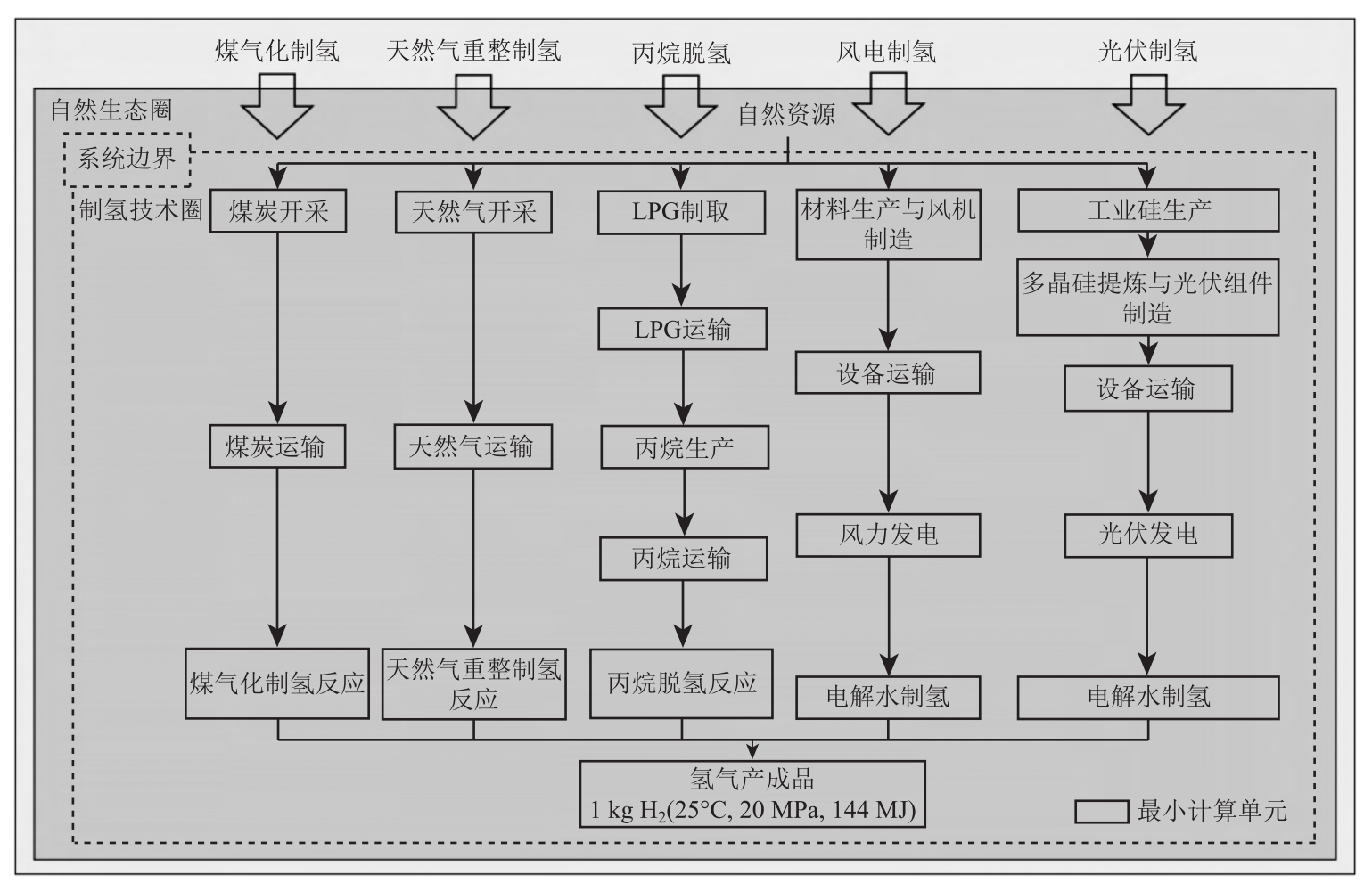 本研究以全生命周期評價(LCA)方法,深入分析了五種制氫技術路線:煤氣化制氫、天然氣重整制氫、丙烷脫氫制氫、風電制氫和光伏制氫。研究從能效、能量轉換效率、碳排放、成本等多維度進行了評估,旨在為我國氫能產業的未來發展提供數據支持和理論指導。通過全面對比,研究揭示了不同制氫技術在各個指標上的表現差異,尤其是在節能減排和經濟性方面,為中國氫能技術選擇和政策制定提供了新的視角。