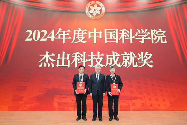 侯建國為獲得2024年度中國科學院杰出科技成就獎個人成就獎的陳立泉院士、陳仙輝院士頒獎