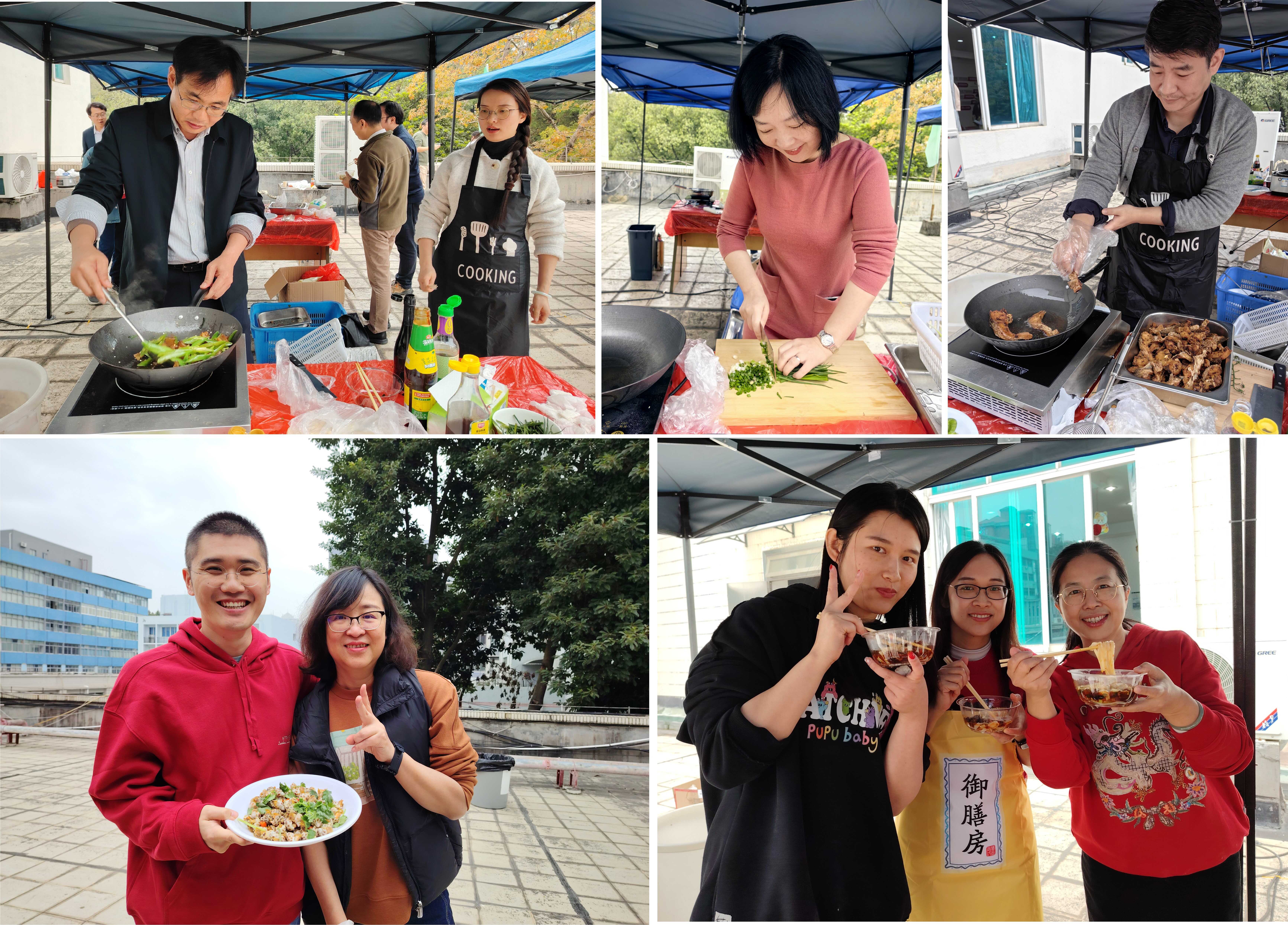 現場氣氛熱烈,暖意濃濃。蛇年特色的背景墻首先映入眼簾,讓年味撲面而來,一旁錯落有致的地堆擺件、高高懸掛的紅燈籠點綴著節日氛圍,展翅欲飛的鯉魚風箏、小巧可愛的裝飾掛件寄托著大家對新年的祝福和憧憬。職工們興致盎然、情緒高漲。在“你畫我猜”暖場游戲后,大家摩拳擦掌般開始廚藝比拼。各工會小組的代表們系上圍裙、挽起袖子,切菜備料、點火燒油,揮鏟顛勺、撒鹽點醋,每道工序都認真細致,動作干脆利落。一番熱火朝天的勞動后,常德牛肉粉、鹽焗花螺、干鍋熏魚、紫菜蝦滑餅等一道道極具地方特色的菜肴被端上餐桌,散發出誘人的香味。在包餃子環節,大家分工明確又配合默契,切菜、拌餡、揉面、搟皮······大家一邊包餃子,一邊交流各地春節習俗和包餃子的不同方法,構成一幅溫馨而美好的畫面。